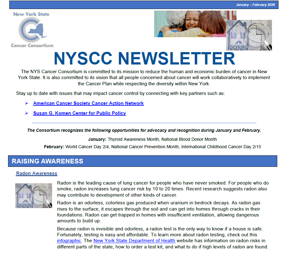 This edition offers a variety of resources related to Cervical Cancer Awareness, Radon Awareness and what is happening around New York State.